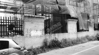 昨天下午,记者来到位于市区下吕浦的南浦实验中学。在学校西面的围墙上,记者找到了这两句用红色油漆书写的“狠”标语:“施工不能停车,被烧被砸概不付责”。不过,此段围墙附近仍停放着几辆轿车。