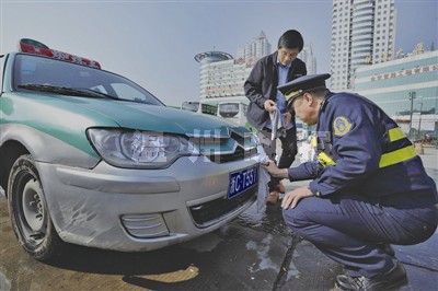 上街整治出租车 市运管局局长带头帮的哥洗车