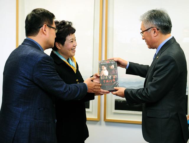 赵依芳向金钟德部长赠送《中国往事》