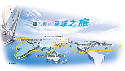 据了解,郑志良的环球之旅将于明年1月在海南三亚正式启动,沿途北上停靠广州、深圳、厦门、福州、温州、舟山、上海、青岛等地后,跨越太平洋到达美洲大陆,停靠10个城市;再途经巴拿马运河,穿越大西洋到达欧洲,并在欧洲停靠10个城市;之后再一路南下,穿过好望角到达毛里求斯,一路向东北绕过马六甲海峡,到达新加坡;继续东北方向,停靠马来西亚,经香港、台湾,最终返回温州。全程约3500海里,历时两年多,总花费800万元左右。