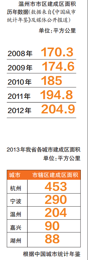 另据了解,目前2014年温州市区城市建成区的面积及范围的认定工作已经在开展。但具体数据还要等市政府来对外公布。