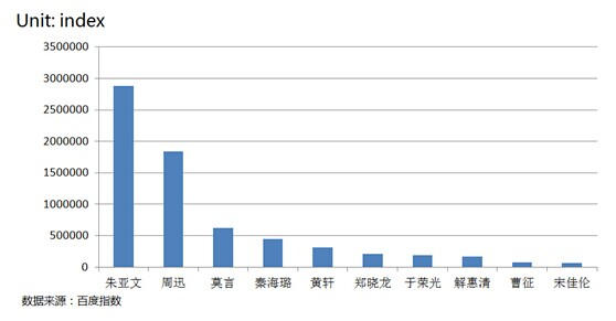 很多人关注究竟哪位主演对《红高粱》的收视率贡献最高,百度风云榜给出的搜索数据表明,周迅在影视关注度、好评指数上毋庸置疑表现最佳。但相比,朱亚文引发网友的关注度最高,其中饰演的余占鳌的角色最吸引眼球,也得到了不少评论。