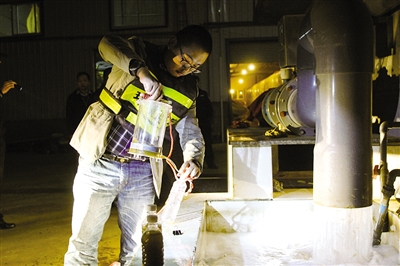 今年7月,环保部门在检查时发现,该光鲜企业存在偷排废水的不光彩行为。经过几个月的明察暗访,执法人员大致摸清了“宝源化工”的偷排规律:先在水闸里偷放一条暗管,在前端监测口的是经过处理的废液,夜间则用水泵和暗管将未经处理的化工母液直接送到排放口。由于该厂污水颜色与飞云江水相似,一旦污水入江便可“混水排污”。此外,工厂还专门设置明岗暗哨,一发现风吹草动,马上停止偷排并抽走暗管,给取证带来很大难度。
