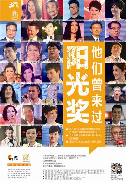 晶报“阳光奖”是由深圳报业集团晶报社发起主办的大型公益跨界活动,从媒体、公众和专业视角,挖掘、表彰以各种形式推动社会建设的新锐力量,树立具有时代特质的精神榜样。由深圳市金蔷薇影视传媒有限公司联手十几家影视公司联合发起的“九恒空气能·2014(深圳)金蔷薇微电影导演大赛暨新锐导演扶持计划第一季”以“中国梦•导演梦”为主题,以扶植新锐导演为目的。