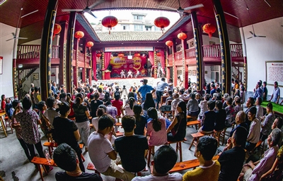 温州网讯 朗朗上口的悠悠鼓词、小品、独唱、排舞、群舞、独舞、军乐、腰鼓……每逢周末或节假日,各种专业的演出和自娱自乐的乡土文化花落永嘉县乡村,文化礼堂给当代农民一个精神家园,成了当代乡村一个精神文化地标。