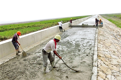 温州网讯 去年8月,在龙湾区海滨围垦堤坝处,工人浇筑混凝土筑起“海上长城”。资料照片苏巧将叶晓东摄
