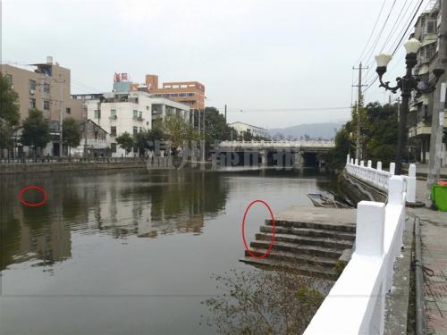 图为少女落水处(右红圈)及被发现处(左红圈)。警方供图