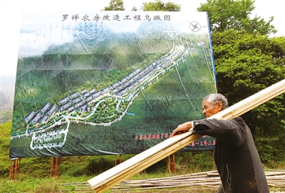 我看到村前田野中间的“绣球屿”前立着一块牌子,牌子上是罗垟新村蓝图,从这幅蓝图可以看出,规划建成的新罗垟已无一丝儿古村元素,清一色的水泥钢骨房舍将占据这里的空间,届时,这座楠溪江源头古村也将成为一座彻头彻尾的“新农村”了。麻炳海介绍,罗垟村灾后重建工作一拖再拖,这个牌子是去年立的,立牌以后又杳无音讯了,罗垟村原属溪下乡辖下,后撤乡并入岩坦镇,罗垟到镇政府车程两个小时,现在真是天高皇帝远了。