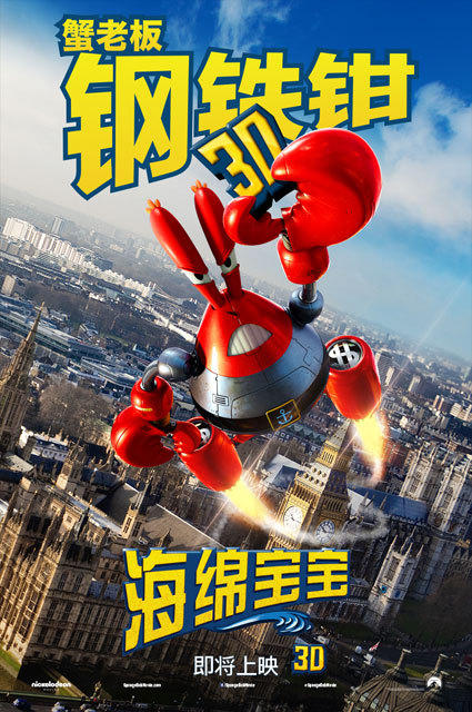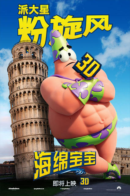 腾讯娱乐讯《海绵宝宝3D》于11月27日正式发布了5款中文角色海报,海绵宝宝、派大星、章鱼哥、蟹老板和痞老板五位主要角色重磅亮相,分别现身于法国埃菲尔铁塔、意大利比萨斜塔、美国总统山、伦敦大本钟和史前巨石阵5处名胜古迹。请注意!他们此刻已经变身“超级英雄”,不仅体型巨大,而且每人都拥有神奇的超能力。借着拯救世界的契机,顺便来一场“公差旅行”,对几位主人公来说倒也是非常惬意的一件事。