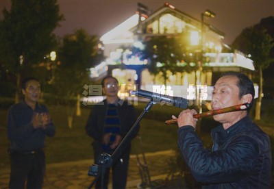 温州网讯 晚间时分,若到温州市区杨府山公园里走走逛逛,便会被不远处传来的悠扬的笛声所吸引。循声而去,只见凉亭中有一位手拿竹笛的老者,忘情地吹着空灵动听的乐曲,为公园平添了几分优雅的艺术气息。在近两年的时光里,这夜晚中的笛声几乎成为杨府山公园中一道美妙的艺术风景,越来越多的散步者为了听一听这动人的旋律而来到公园,很多人甚至成为了他的忠实“粉丝”,有的提前预约点歌,有的特地上门求教。