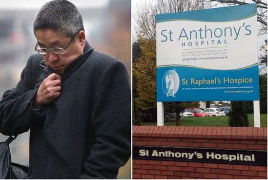 杨林和装针孔摄影机偷拍逾千人。图右为他服务的圣安东尼医院。