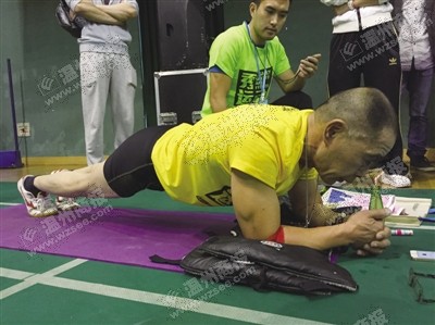 他告诉记者,今年9月1日,为了参加一个企业举办的比赛,才开始练习平板支撑,在那次比赛中,他撑了48分钟。“平时在家练习最久撑了80分钟,今天现场有那么多人给我加油,才有这样的表现。”韩新华说,90分钟也是他的最好成绩。