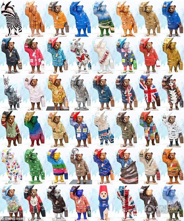 腾讯娱乐讯由妮可·基德曼、莎莉·霍金斯、本·韦肖、吉姆·布劳德本特、休·博内威利等明星主演的真人喜剧动画电影《帕丁顿熊》于11月23日在英国伦敦举行了盛大首映,基德曼与老公在红毯热吻大秀恩爱为影片造势,影迷的关注度更是瞬间升温。随着《帕丁顿熊》在11月28日在英国的全面上映,影片制作方推出了在伦敦街头寻找帕丁顿熊活动,有50只穿着各异的帕丁顿熊雕像在伦敦街头展出。这50只雕像分别由“卷福”本尼迪克特·康伯巴奇、歌手蕾哈娜(微博)、《哈利·波特》女星艾玛·沃森、妮可·基德曼、本·韦肖、大卫·贝克汉姆等明星设计、绘制、打造,展现了他们心中的帕丁顿熊形象,可谓独一无二的“私人订制”。影迷也纷纷走上街头与可爱的小熊们合影留念