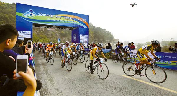 温州网讯 昨日上午,2014中国·瓯海“捷安特杯”自行车赛在泽雅举行。本次比赛吸引了福建、上海、杭州等地共60支队伍近300名运动员参加,其中还有两名外国选手。比赛起点设在泽雅镇李降垟,终点设在龙井山停车场,全程25公里。