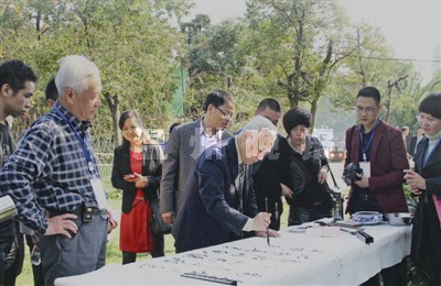 在墨池公园,温州市诗词楹联学会会长刘周晰,向大家介绍了鹿城的诗词文化发展情况,“鹿城文化底蕴深厚,诗脉源远流长。谢康乐宏开先河,四灵继起,上自士大夫,下及市井,吟事蔚然成风。有唐以来,著名诗家如孟浩然、陆游、朱熹、文天祥等先后旅鹿并存诗作……”