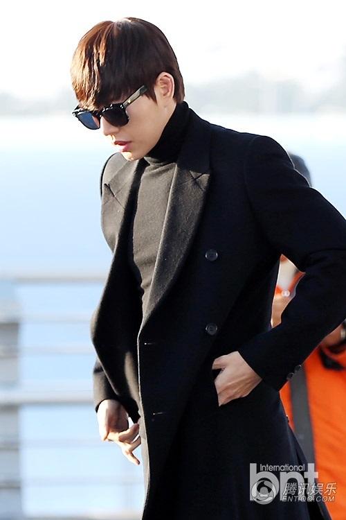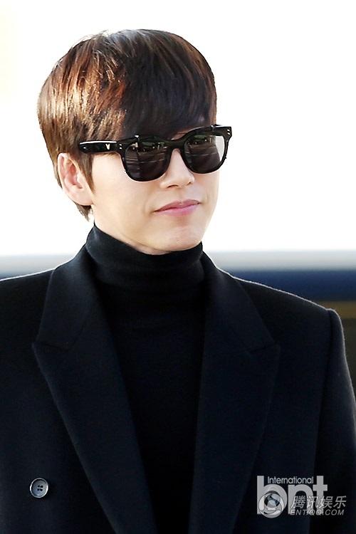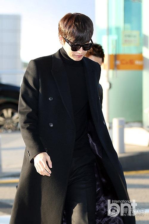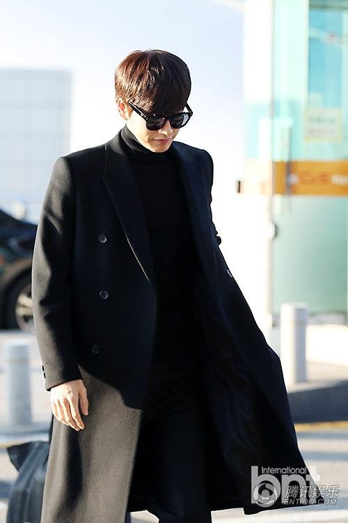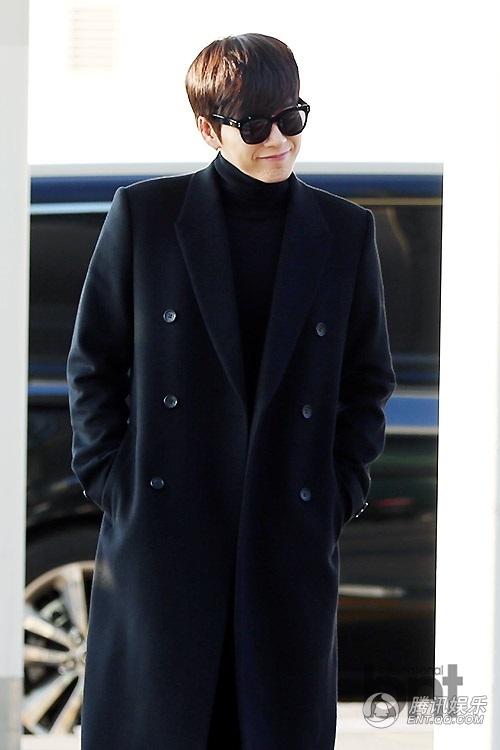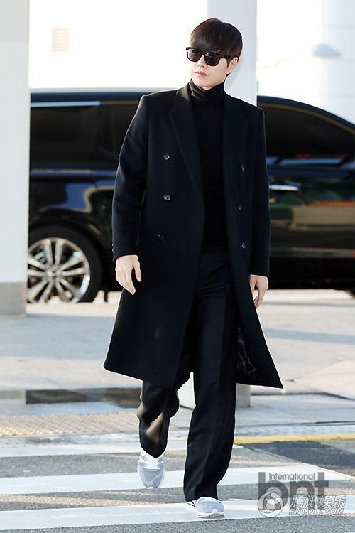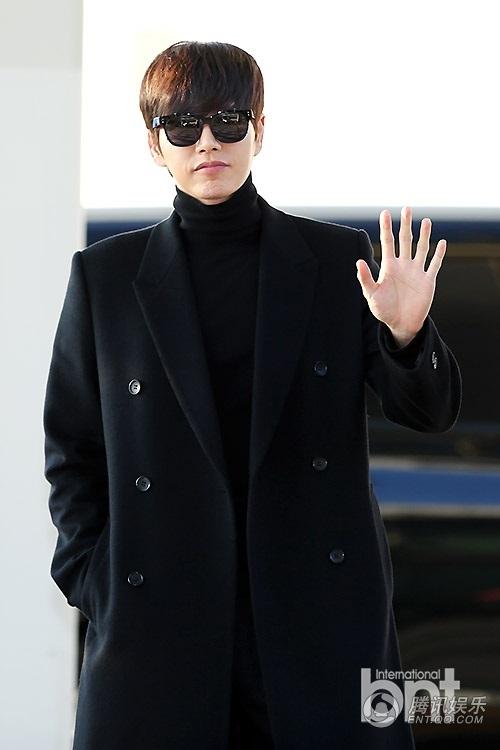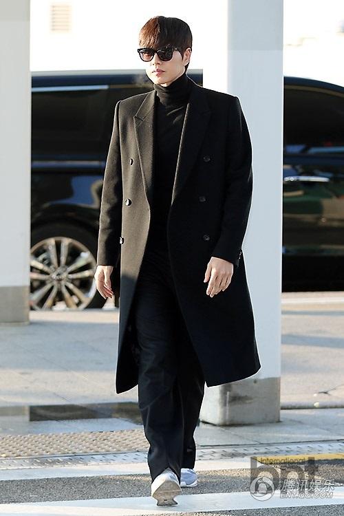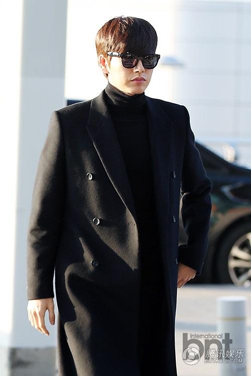 组图:朴海镇飞中国拍戏 黑风衣派头十足