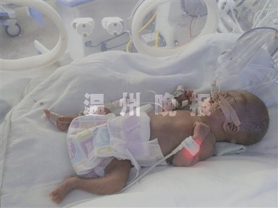 昨天下午2时许,这个小生命躺在温医大附二院新生儿科的保温箱里,医生通过嘴里插着的进食管子,给他一口一口喂奶,现在他每天一共能喝10毫升。他的主治医生杨祖钦说,这男婴能喝奶已经是很大的进步了。11月3日,他喝了第一口奶,但马上出现了不适,不得不停奶。其间,因为肚子胀气等原因,他还停奶2次,分别是11月13日和11月17日。