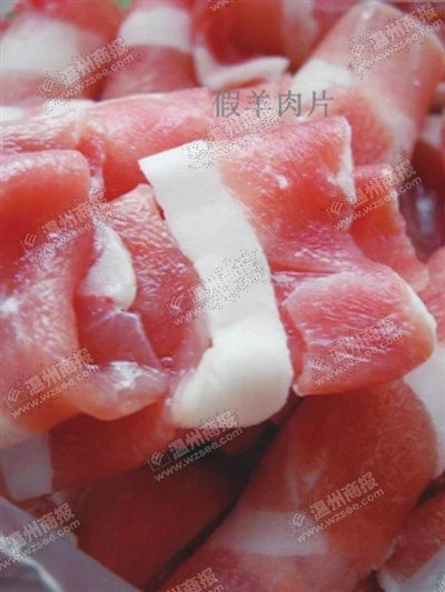 假羊肉的白肉和红肉是分开的,白是白,红是红,一块一块的。