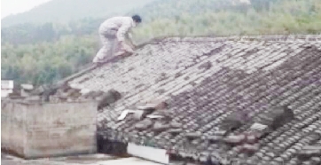 民警到达楼顶时,朱某正蹲在房顶上。见民警靠近,朱某向屋顶边缘退缩。为了防止发生意外,民警只能在旁边劝导朱某。
