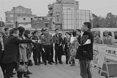 首站,大家来到蒋家桥地块工程。滨江街道办事处副主任黄锦辉具体介绍说,作为一期启动的该地块桥西片,现已拆除全部旧房,计划于年底前进场施工。在现场,代表们看到,工地已经围起施工围墙,几台大型起吊机在工地上热火朝天地运作。朱建光向大家介绍,该项目占地面积共64亩,共有270户,于2007年动迁,因各种原因无法全部拆除旧房。经街道努力,终于在今年9月24日拆除桥西片最后1户旧房。有着相同“际遇”的,还有过江通道延伸工程、黎二村1号、5号、10号地块,以及塗村城中村建设等项目。