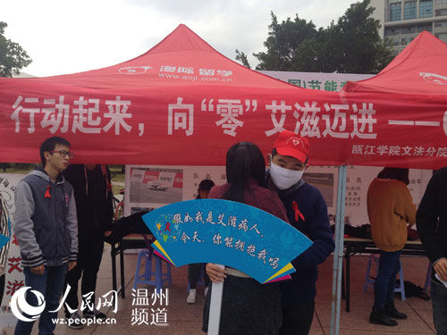 温州大学生宣传抗艾:拥抱一个正视“艾滋”(组图)