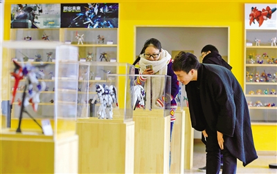 绘迹光年动漫美术馆内,动漫爱好者在观赏动漫模型。刘伟摄