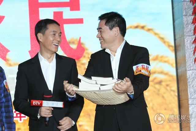 腾讯娱乐讯(文/小方芳)12月8日,电视剧《老农民》在京举行了北京卫视开播发布会,导演张新建、编剧高满堂携主演陈宝国(微博)、冯远征(微博)、蒋欣(微博)、刘敏等出席。发布会现场,“无敌老冤家”陈宝国和冯远征揭秘了拍摄趣闻,作为村里一枝花的蒋欣现场也献唱了一段吕剧。除此之外,高满堂还聘请史上最贵“司仪”陈宝国和冯远征为现场的媒体送出《老农民》的同名小说。高满堂还透露,在写这部戏之前还立下军令状,写不好《老农民》不是退出影视圈而是退出“人生”。