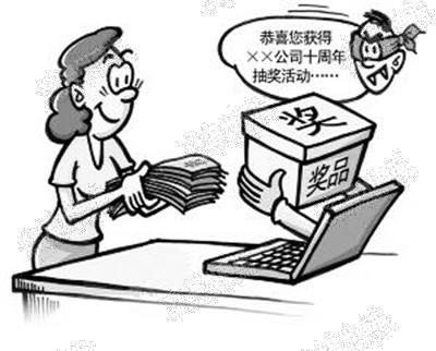 犯罪分子用“天上掉馅饼”的各类中奖信息引诱受害人,并以领取奖金或奖品需缴纳税金和保证金的方式诱使受害人将钱款转至指定账户。
