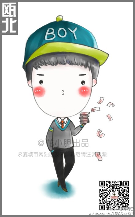 这组可爱的手绘卡通形象中,手中飘出数张百元大钞的少年形容瓯北是经济重镇,胸前有超大纽扣的形象代表了以纽扣拉链闻名全国的桥头,以茶叶少年形容乌牛,香柚少女代表碧莲等。