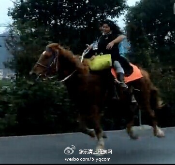 据该网友介绍,当时她正好从北白象去乐成,在界岱往万岙路段,看到了一匹枣红马。起先她并没有在意,等离得近了,才发现马上还有两个人。男的一手搂着美女,一手拽着缰绳,在国道上策马奔腾。