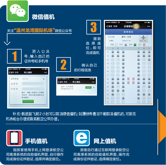 今后,无托运行李、无携带婴儿的旅客可通过微信平台进行值机,随后在安检口刷二代身份证登机。