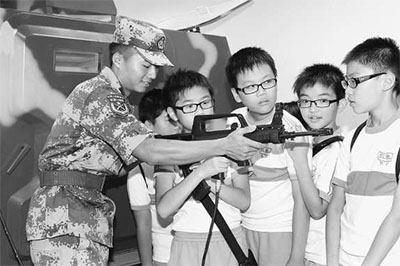 今年7月,第十届澳门青年学生军事夏令营开营典礼上,驻军官兵表演的人体部位靶射击令澳门学生拍手称赞。特邀嘉宾现场点将出题,官兵熟练运用手中武器,指哪打哪,枪响靶落,弹无虚发。嘉宾点头称赞:“好样的!驻澳精兵!”