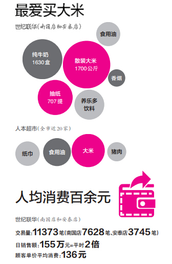 那么,当天温州人究竟花了多少钱?买了哪些东西?昨天,市区2家世纪联华超市和浙江人本超市有限公司为我们揭晓答案。