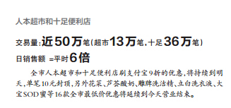 温州网讯 “双12”温州交易量全国第五!12月12日,支付宝钱包首次联合线下几百家实体商业门店大促销。凡持支付宝在人本超市、十足便利店、联华超市结账即打5折,减免20元或50元封顶。