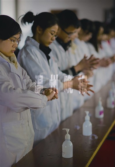 温州网讯 昨天,温州医科大学举行了一场别开生面的中外医学生临床技能比赛,100多名医学生依次排开,分组接受评委的考验。其中一项洗手,必须要在30秒内完成洗手七大步骤。据主办者介绍,这是迄今为止浙江地区规模最大、涉及面最广、参赛选手层次最多的口腔医学专业学生临床技能大赛,优胜者必须30秒内把手洗干净了才能代表浙南地区参加全国比赛。