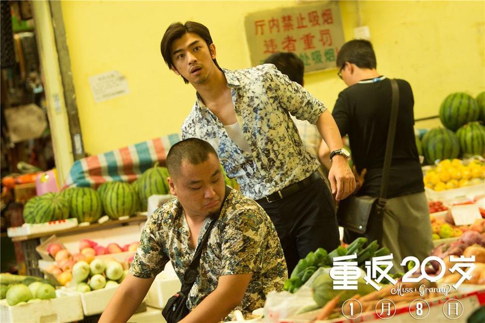 同时,片方还发布了一款剧照,“男神”陈柏霖竟然出现在了菜市场,还变身“跟踪狂”,更被“奶奶”杨子姗怒斥“流氓!”让人忍不住猜想“高冷男神”到底对“奶奶”杨子姗做了什么?特辑的结尾也出现了导演“见义勇为”救“奶奶”的镜头,喜感十足!电影中,音乐总监陈柏霖变身“星探”,不仅帮助前进乐队实现梦想,更恋上乐队主唱“奶奶”杨子姗,高冷男神一秒变暖男。陈柏霖还在剧中和鹿晗成为“情敌”,两大男神PK,陈柏霖更是随时保持电力,面对鹿晗时也不小心“放电”,差点电晕鹿晗!