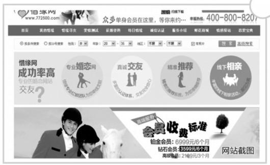 交了数千元成为会员,最终却连“意中人”的面都见不上。近日,多位市民反映,他们在一个名为“惜缘网”的婚恋网站上,交了数千元成为会员,会员费都打了水漂。一位曾在该网站工作过的员工爆料,网站客服人员虚拟美女,冒充成男客户的“意中人”,让客户缴纳会员费,以此牟利。