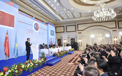 国务院总理李克强当地时间14日下午在阿斯塔纳与哈萨克斯坦总理马西莫夫共同出席中哈企业家委员会第二次会议闭幕式并致辞。