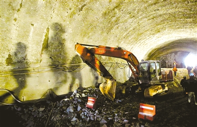 工作人员身着制服,头戴安全帽,簇拥在众多礼炮与鞭炮周围,准备庆祝这条隧道的贯通。而昨天之前的此时,这片工地正一刻不停地赶进度。