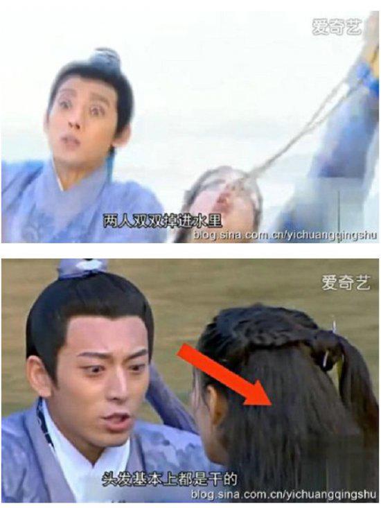 李莫愁为了救陆展元,被仇人砍断绳子,然后双双掉进水里,但是当两人从河水中浮出水面时,头发居然是干的,难道两人都自带防水功能吗?