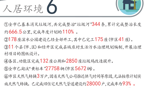 滨水公园建设方面,全市178座滨水公园已全部开工,其中,完工175座。已建成的滨水公园成了市民休憩、健身的好去处。