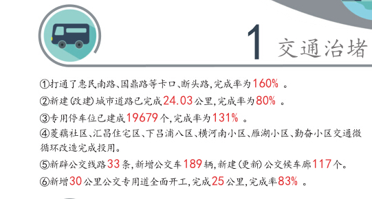 与此同时,我市今年还完善了市区6个交通微循环篇交通实施,新开辟33条公交线路,新增公交车189辆,新建或更新公交候车廊117个。