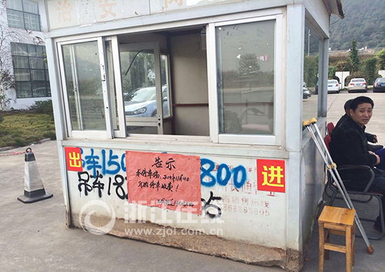 从网友提供的现场图片看,场地上已经停放了数十辆汽车。一旁的岗亭边坐着几位戴红袖章的村民,正向停车的司机收取停车费。岗亭上张贴着一张告示,“本停车场:2014年11月14日开始停车收费”,落款为石帆街道绅坊老协。