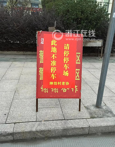 因为场地停车要收费,不少车主选择停到相距不远的马路边。但不久,一块红色的告示牌竖起,“此地不准停车,请停停车场”,落款也是绅坊村老协。