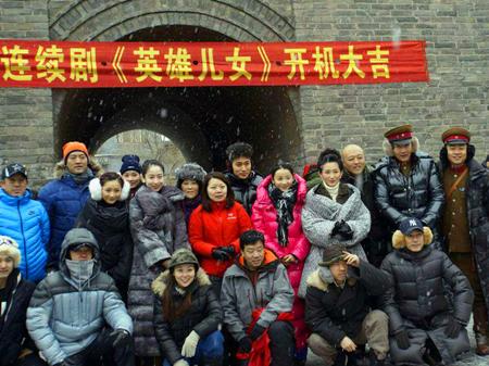 当天沈阳温度很低,《英雄儿女》主创团队在大雪中举行了开机仪式。女一号苏青典雅的发髻与身上的大衣相映成趣,而该剧的男一号保剑锋(微博)(微信号:baojeff)并未出现。据悉,苏青将在这部戏中与保剑锋共谱一段红色爱情,俩人之前并未有过合作,而当天保剑锋的缺席更是为俩人即将上演的对手戏增加了一层神秘感。