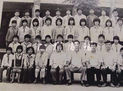 小学毕业照(第一排左起第四个)摄于1985年