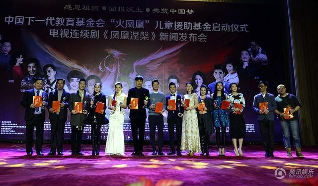 由北京电影学院、北京华风博纳国际文化传媒有限公司等单位联合拍摄40集电视剧《凤凰涅槃》,剧组该所获盈利20%捐给“火凤凰儿童援助基金”。主席台两侧的LED播放艺术家捐赠的书画作品:崔如琢的绘画、姜昆的书法和张金玲的画作、李洪海和宗少山的书法和宗燧岩的绘画等,义拍所得款也将捐给“火凤凰儿童援助基金”。为此在中国生物多样性保护与绿色发展基金会理事长胡德平发言后,蔡国庆宣读倡议书。中国下一代教育基金会的“火凤凰儿童援助基金”启动获得了圆满成功,仅现场筹款就达126万元。著名慈善家陈光标一如既往深情地发表了讲话。著名歌手李丹阳、曾勇和王珂迩分别以《都是为了你》和《幸福花开》唱响了大爱的赞歌。