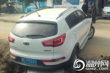 平阳一女司机倒车未仔细观察路况 后轮掉坑里