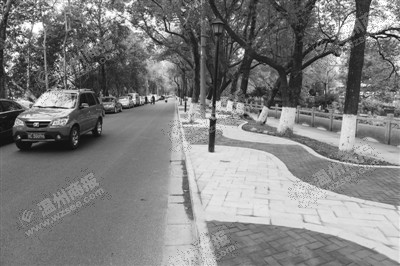 温州九山路绿化带铺上地砖变绿道 为增加活动功能