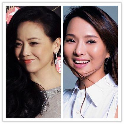 1982年张韶涵和1982年陈法拉,陈法拉的甜美酒窝超减龄,张韶涵的这个造型看起来像大妈一样。